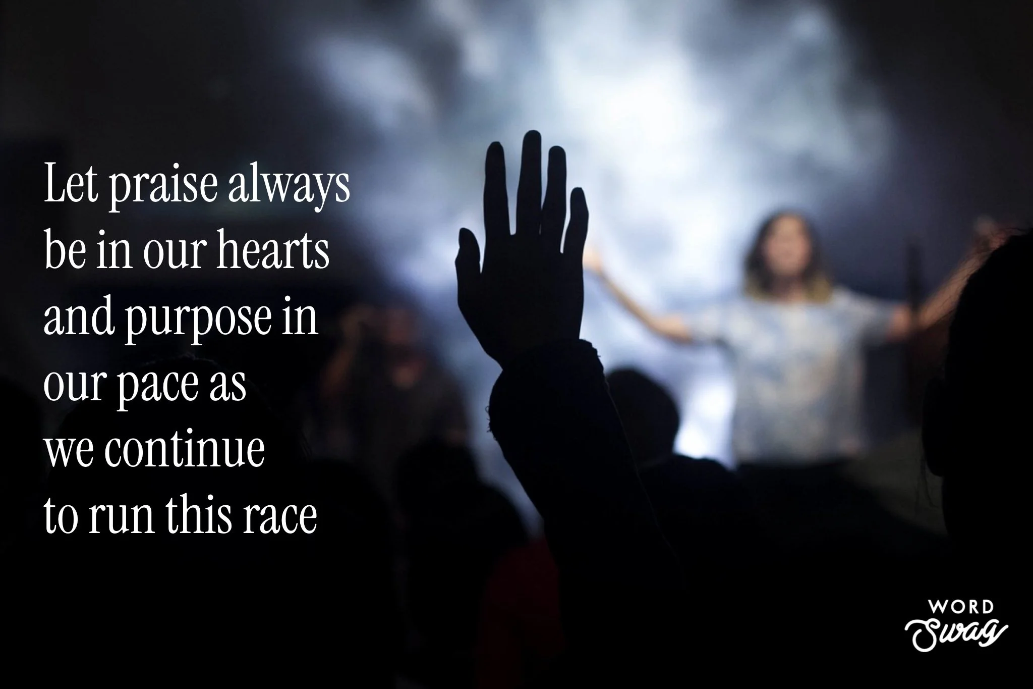 Let praise always be in our hearts and purpose in our pace as we continue to run this race