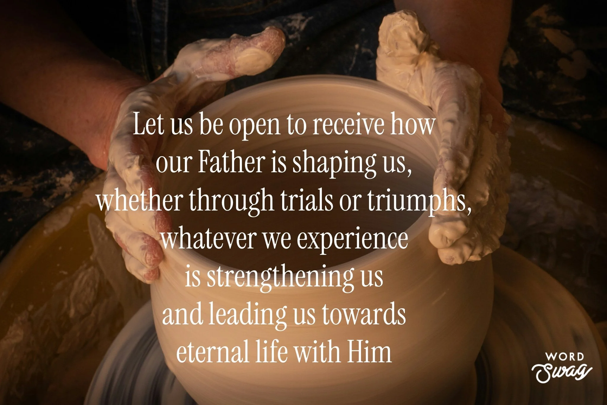 Let us be open to receive how our Father is shaping us, whether through trials or triumphs, whatever we experience is strengthening us and leading us towards eternal life with Him