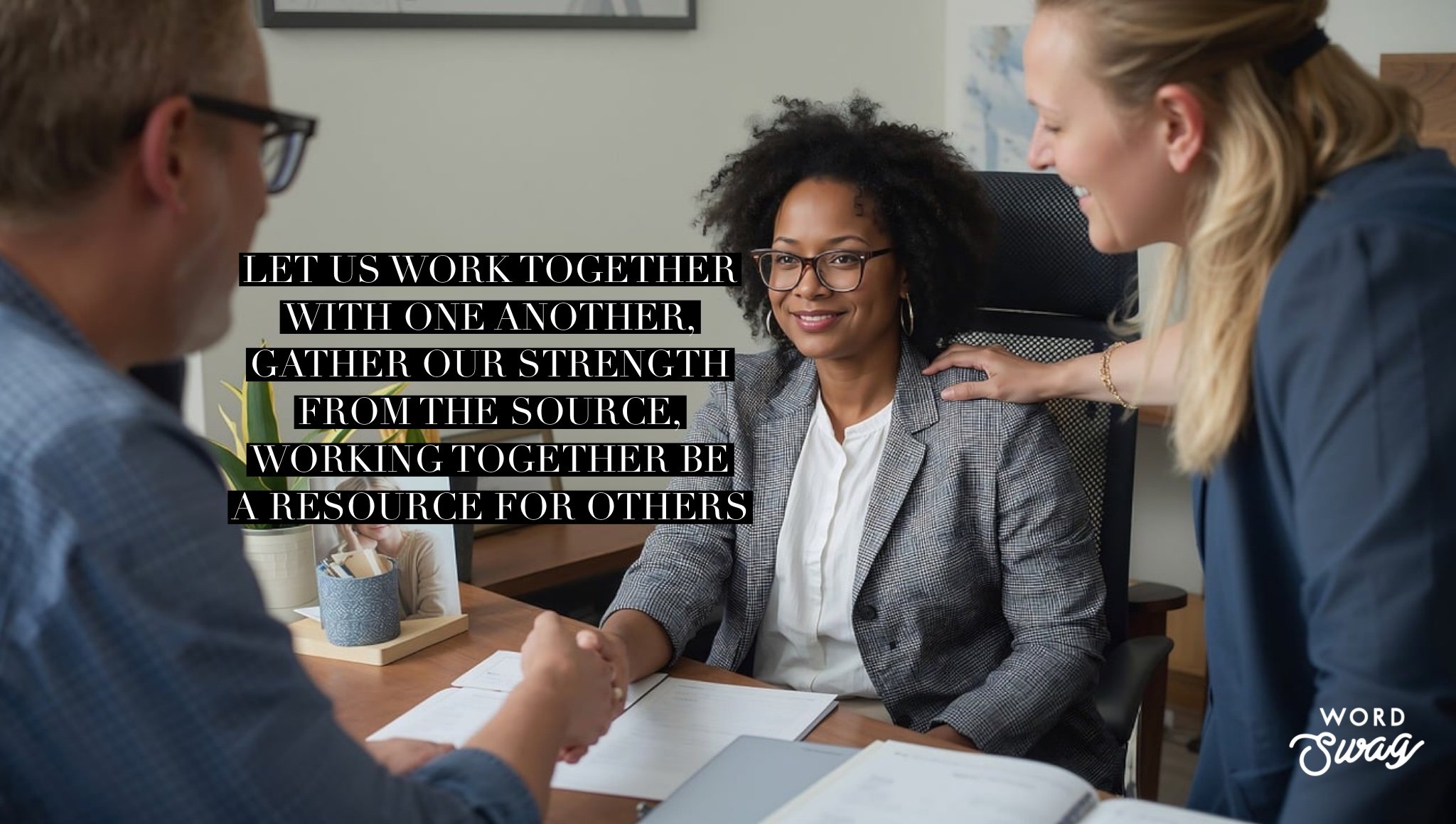 Let us work together with one another, gather our strength from the Source, working together be a resource for others