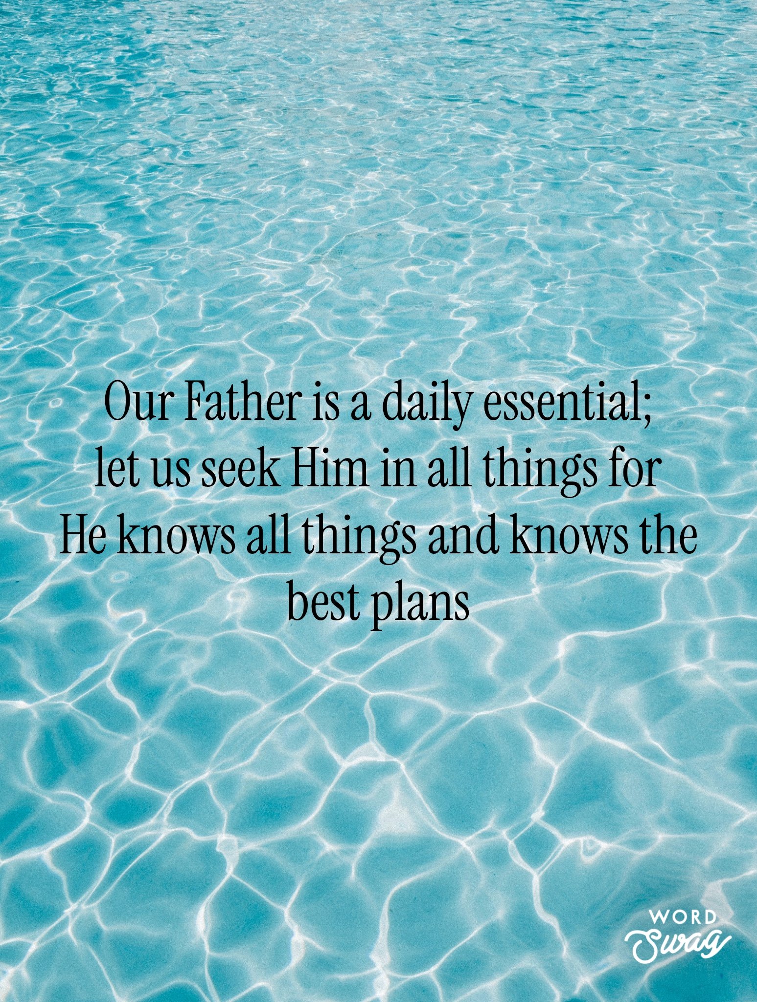 Our Father is a daily essential; let us seek Him in all things for He knows all things and knows the best plans