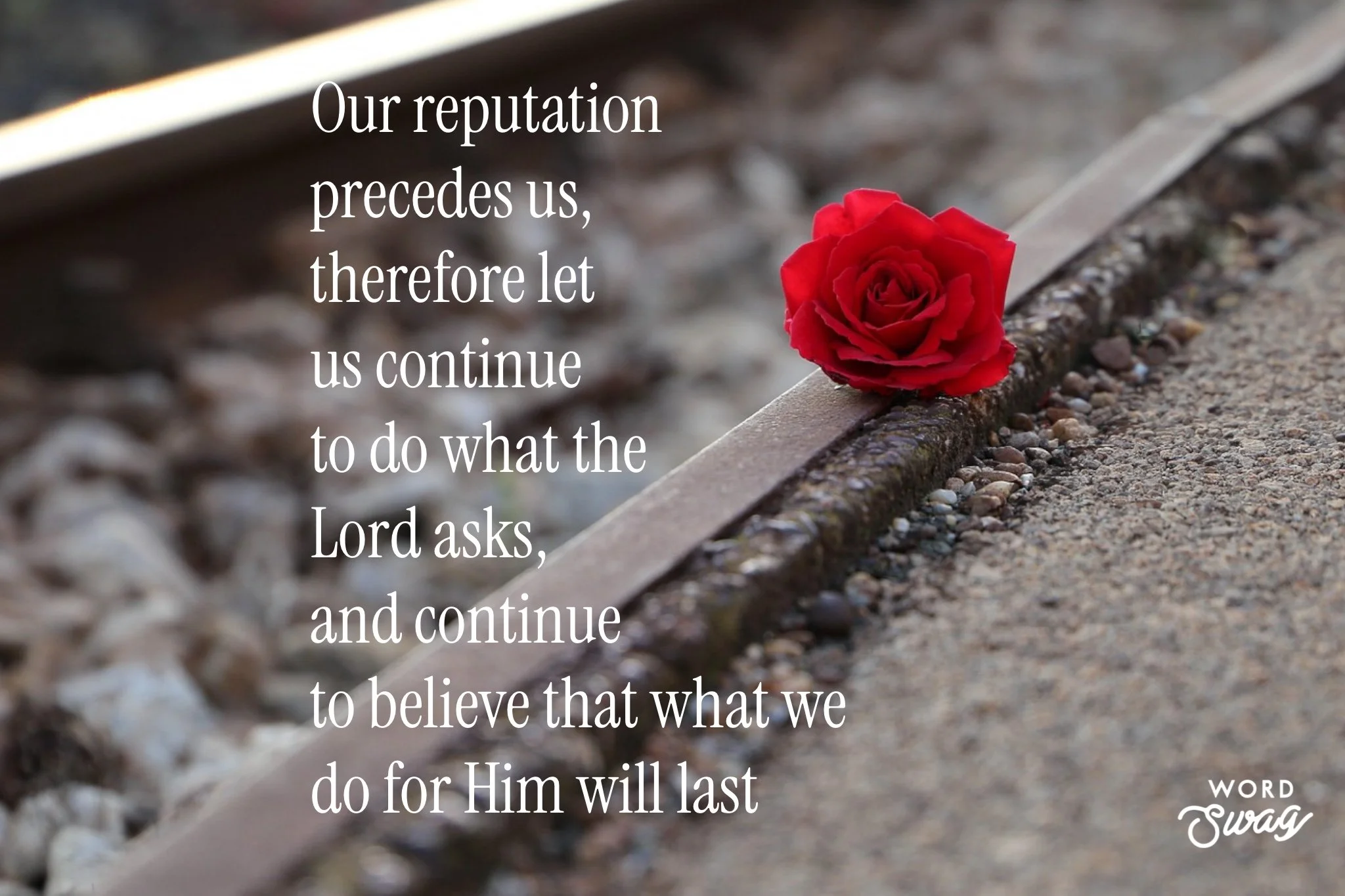 Our reputation precedes us, therefore let us continue to do what the Lord asks, and continue to believe that what we do for Him will last