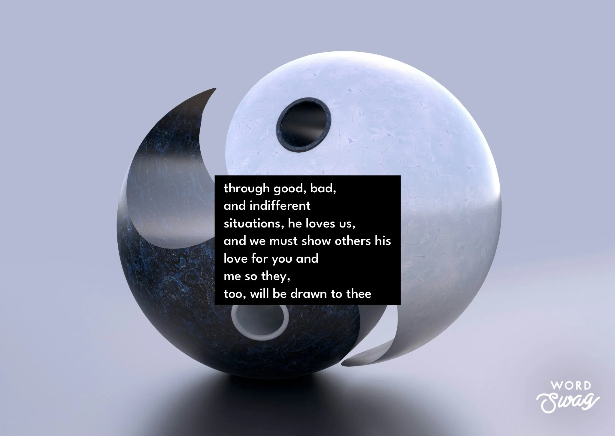 Through good, bad, and indifferent situations, He loves us, and we must show others His love for you and me so they, too, will be drawn to Thee