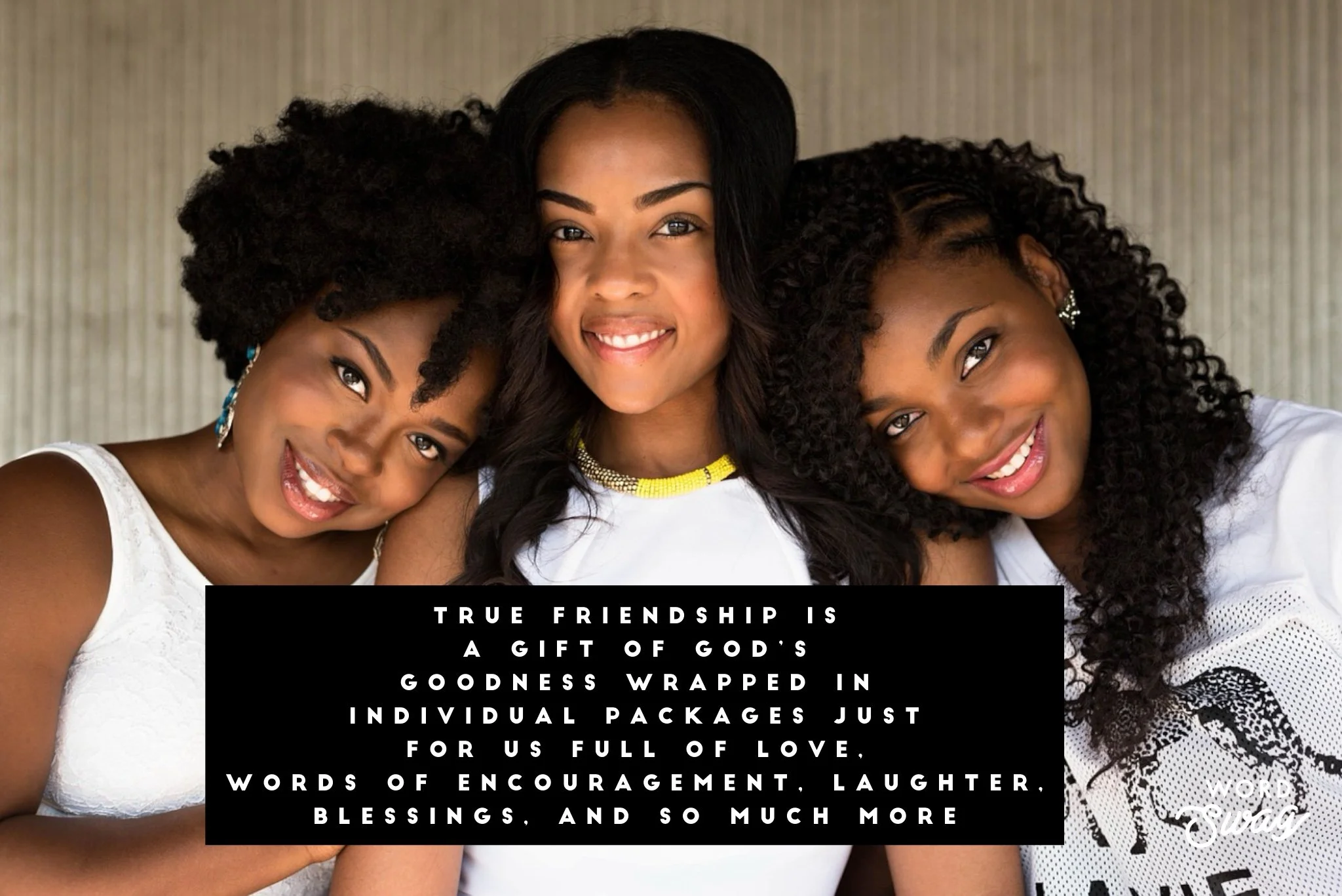 True friendship is a gift of God’s goodness wrapped in individual packages just for us full of love, words of encouragement, laughter, blessings, and so much more