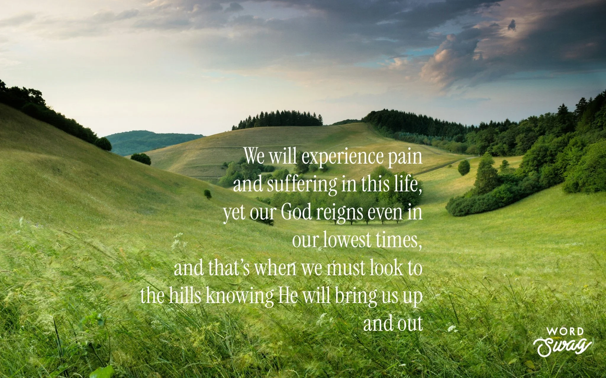 We will experience pain and suffering in this life, yet our God reigns even in our lowest times, and that’s when we must look to the hills knowing He will bring us up and out
